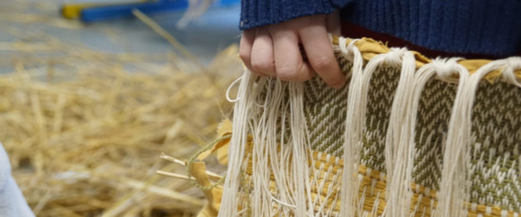 Une construction collective qui aborde le tissage, à partir des matériaux naturels qui nous entourent: laine, lin, paille, chanvre, plantes tinctoriales…